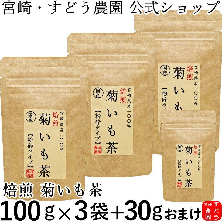 菊芋茶 100g×3袋セット+30gおまけ付き 宮崎県産100% 無農薬 粉砕タイプ 遠赤外線焙煎仕上げ【イヌリンパワー!キクイモ茶/菊芋チップス/きくいも茶/菊芋のお茶/菊芋茶/国産 菊芋 販売/通販】メール便にて送料無料!!宮崎・すどう農園