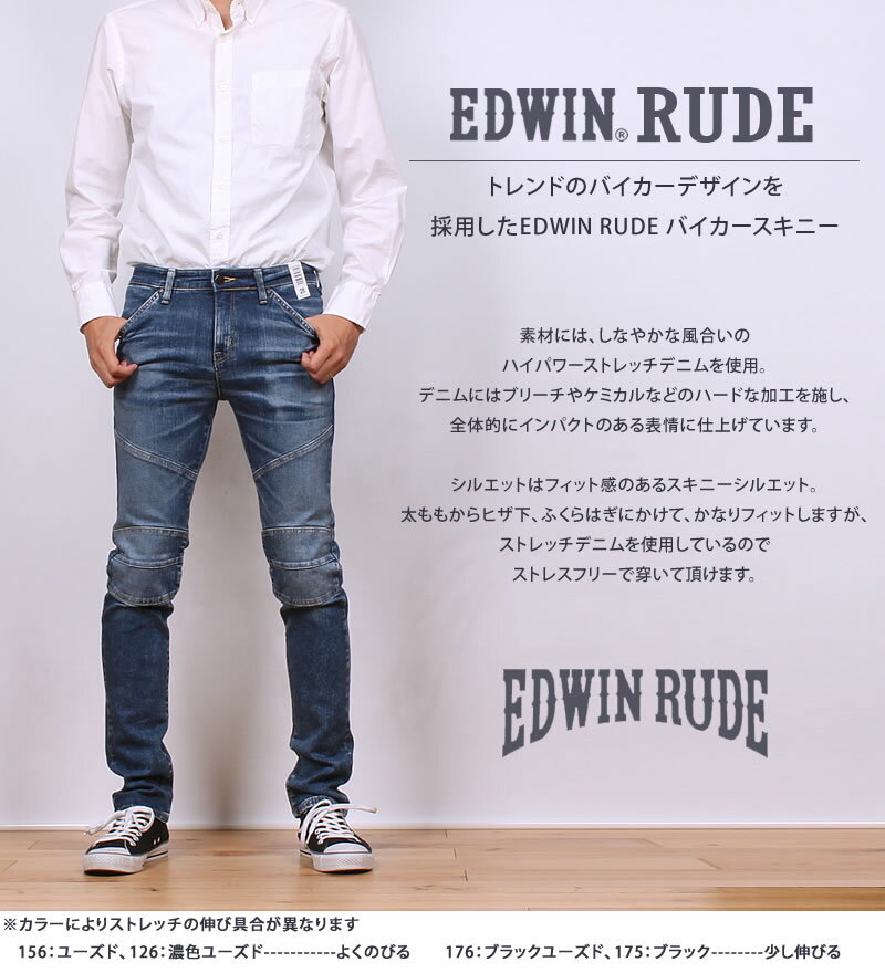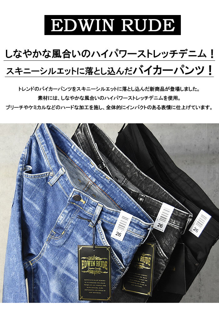 【SALE! ¥9180⇒¥4860】【5000円以上宅配便国内送料無料】EDWIN RUDE バイカー スキニー/ストレッチエドウィン/エドウイン/ルード/EDWIN--KRU22_156_126_176_175アクス三信/AXS SANSHIN/サンシン