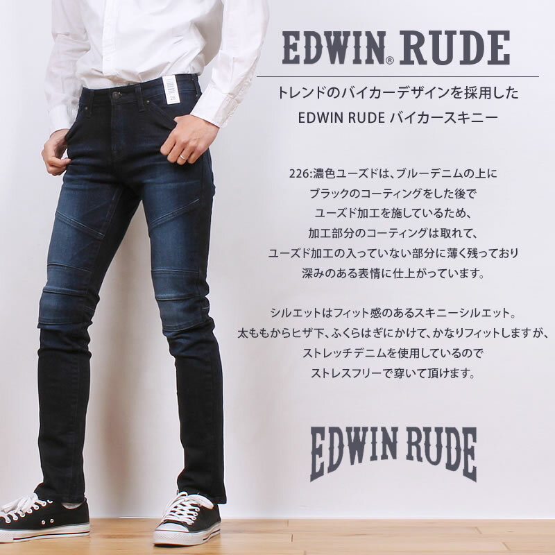 【セール】EDWIN エドウィン ジーンズ RUDE バイカースキニー (KRU22-176) ルード 日本製 ストレッチデニム バイカーパンツ バイカーデニム スキニーパンツ メンズ カジュアル アメカジ ブランド あす楽