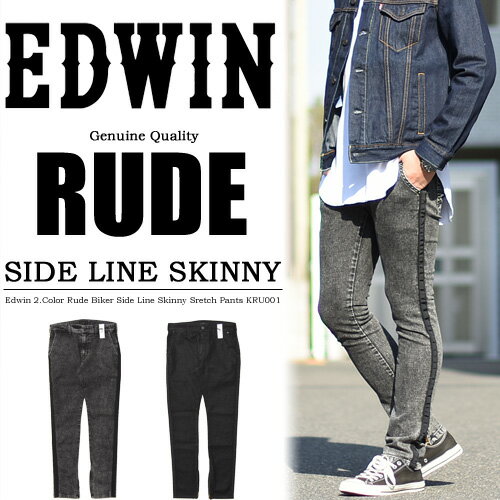 【5%OFF!送料無料!!ソックス一足またはバンダナ一枚プレゼント!!】EDWIN エドウィンKRU22 RUDE バイカーデザイン スキニーメンズ ストレッチ edwin デニム ジーンズ Gパン