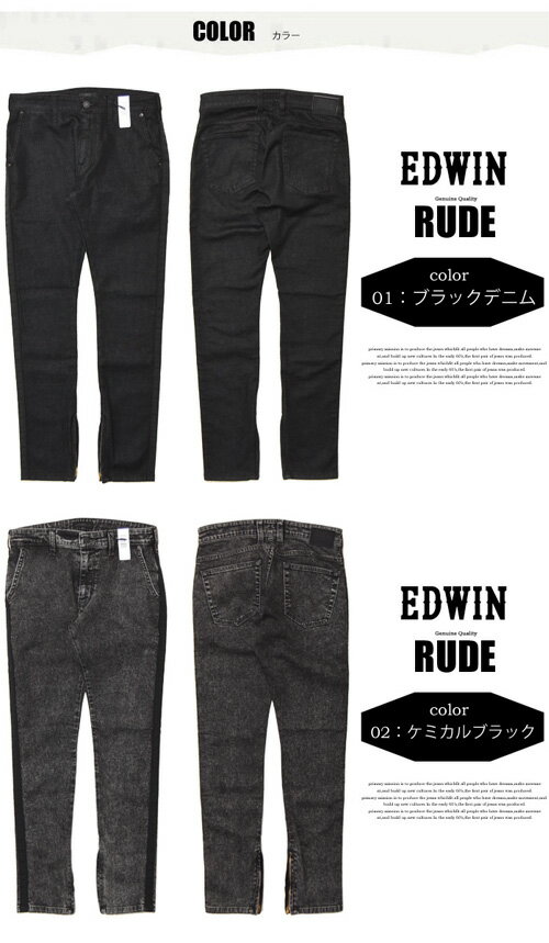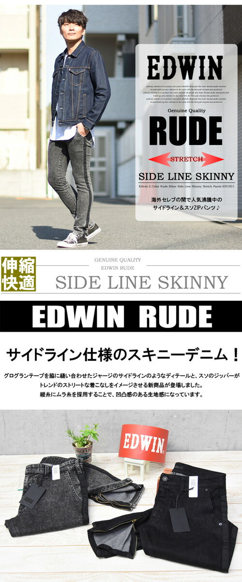 EDWIN エドウィン RUDE サイドライン スソZIP スキニー メンズ ジーンズ 送料無料 KRU001 【楽ギフ_包装】