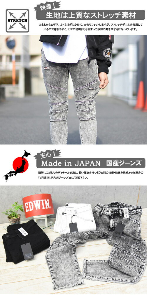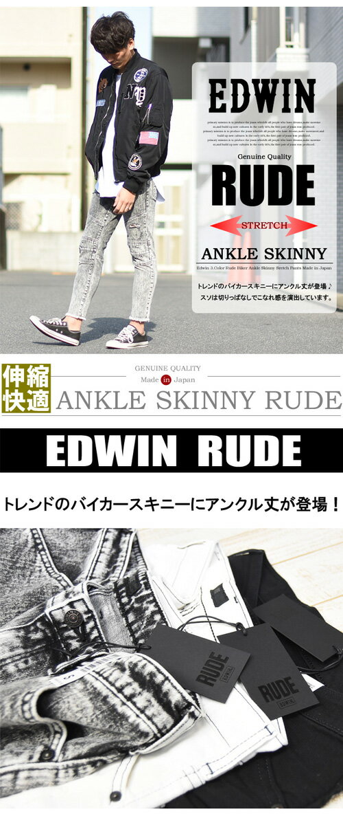 EDWIN エドウィン RUDE バイカーデザイン スキニー アンクルパンツ 日本製 メンズ ジーンズ クラッシュ加工 送料無料 KRU22A 【楽ギフ_包装】