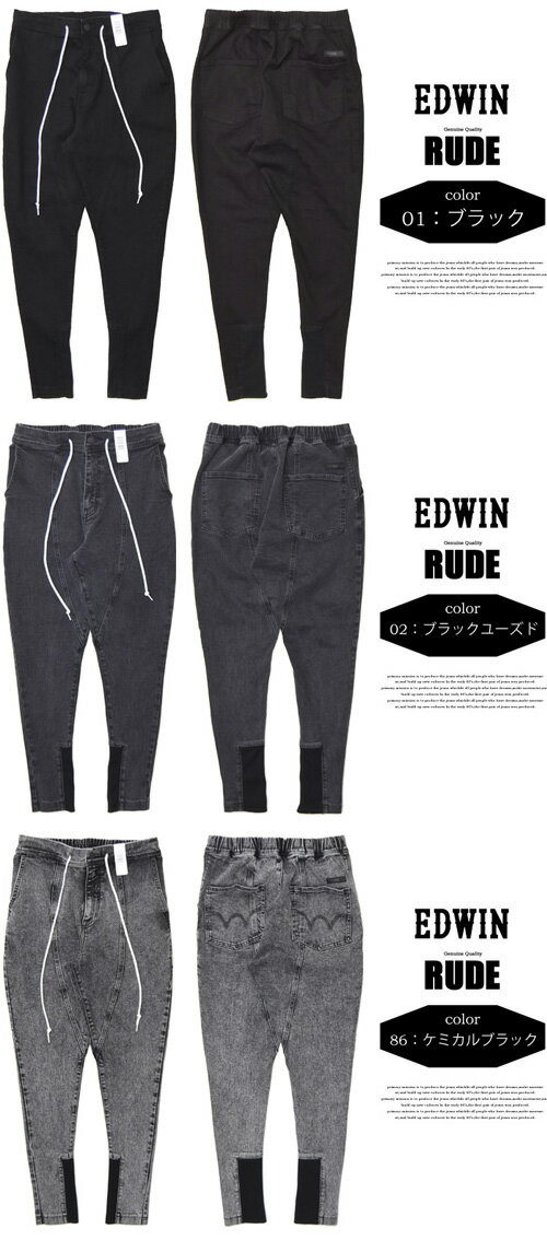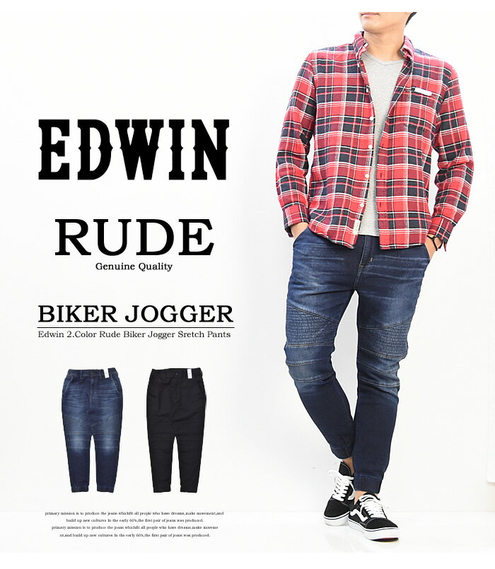 【SALE! ¥9180⇒¥4860】【5000円以上宅配便国内送料無料】EDWIN RUDE バイカー ジョガーパンツ/ストレッチエドウィン/エドウイン/ジョグパン/ルード/EDWIN--KRU33_166_126_175アクス三信/AXS SANSHIN/サンシン