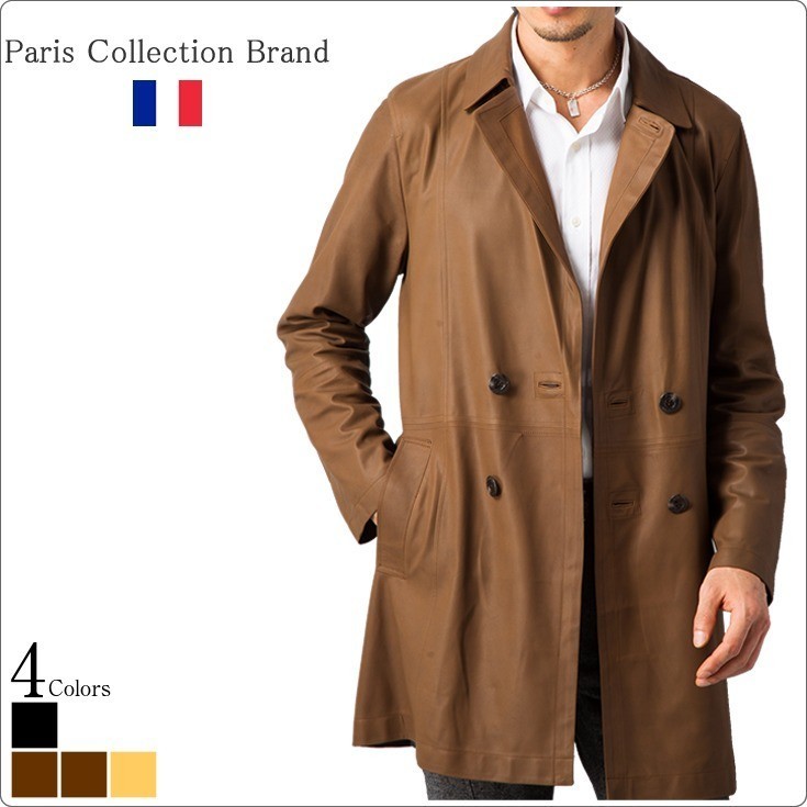 Paris Collection Brand 本革 レザー トレンチコート 通勤コート メンズ パリコレクションブランド 6725 レザーコート レザージャケット 本革コート 革ジャン 本革ジャケット 本皮ジャンパー ブルゾン トレンチコート チェスターコート ロングコート ハーフコート ブルゾン