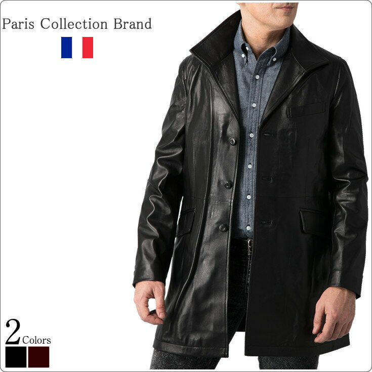 Paris Collection Brand 本革 ステンカラーコート 通勤コート メンズ パリコレクションブランド 6017 レザーコート レザージャケット 本革コート 革ジャン 本革ジャケット 本皮ジャンパー ブルゾン トレンチコート チェスターコート ロングコート ハーフコート 防寒アウター